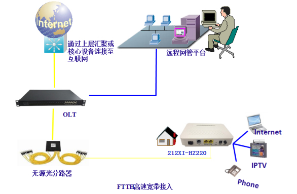 JHA700-G612XI-HZ220提供1个POTS口、支持1个FE和1个GE自适应接口 。设备已实现与业界主流通信厂商(华为/中兴/烽火/阿朗)的GPON 局端设备(OLT)的互联互通,组成千兆系统,满足三网合一的视频、语音和数据业务的FTTH /FTTO的接入需求。