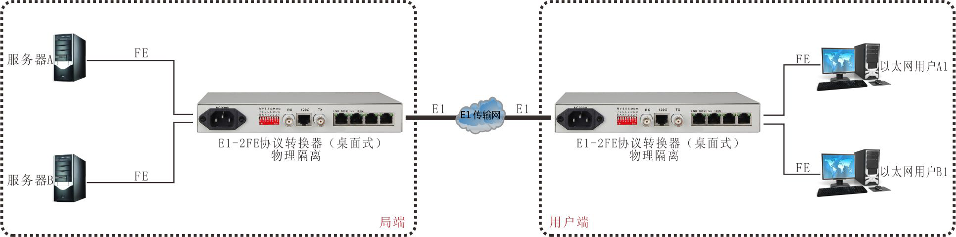 E1转2FE协议转换器(成帧,物理隔离,桌面式)