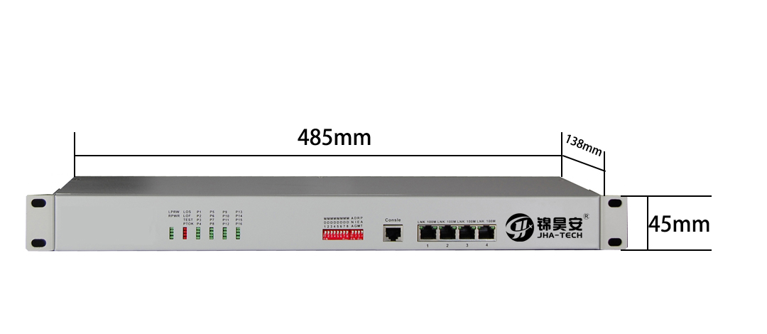 JHA-PCE1OS16F4R4C1本系列设备是本公司研制的专用超大规模集成电路的基础上开发的点对点E1传输设备。此产品提供16路电话;4路以太网接口(以太网接口为交换口,可支持VLAN划分),并共享百兆带宽,每一路带宽可通过Console口进行设置,即逻辑隔离;2个扩展口(可扩展1~4路异步数据,如RS232/ RS485/RS422/Manchester码等);1个Console等;应用十分灵活。具备完善的告警功能,整机工作稳定可靠,功耗低,集成度高,体积小。