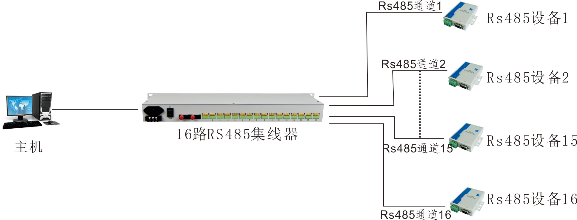 16通道RS485隔离集线器每个端口都自适应0~115200bps 的波特率,所有通道均在相同的波特率下工作,通道传输延时非常小。符合RS485标准,支持透明的,协议独立的RS485 消息传输,使其适用于多种应用,如Modbus 协议等。如果要将PC等监控设备连入网络,16通道RS485隔离集线器上联口可以配置RS232 端口,使您无需安装额外的RS485转RS232 转接设备。当雷击或者设备故障产生时,出现问题的网段将被隔离,以确保其他网段的正常工作。这一性能大大提高了现有 RS-485 网络的可靠性,有效缩短了网络的维护时间。