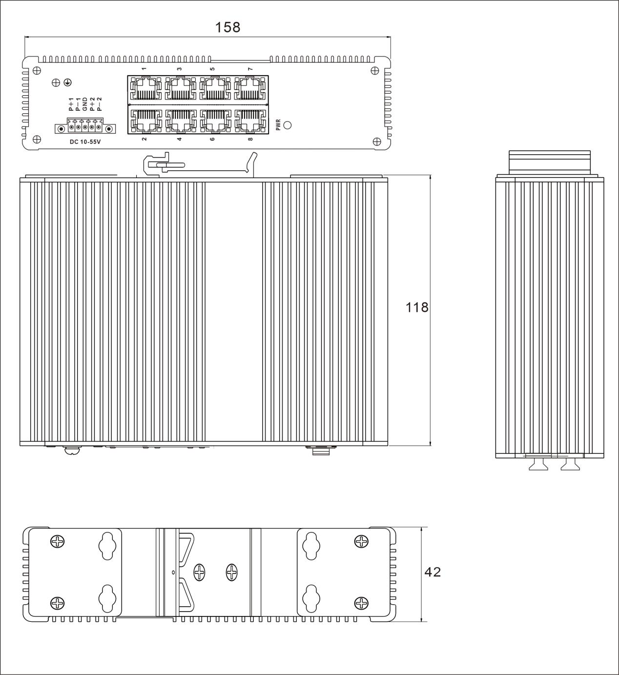 JHA-IG08H系列是一款非网管型工业级以太网交换机,支持8个10/100/1000Base-TX自适应以太网RJ45接口。产品采用无风扇、低功耗设计,IP40防护等级,波纹式高强度金属外壳,工作性能更加稳定。产品符合CCC、CE、FCC、RoHS 标准。-40至85℃的工作温度范围能够适应恶劣的工作环境。DIN导轨式安装,满足工业现场的需求,能为用户的以太网设备连接提供可靠的、快捷的解决方案。该设备可广泛应用于智能建筑,智慧城市,智慧社区,智能交通、电信、安防、金融证券、海关、海运、电力、水利及油田等各种宽带数据传输领域。