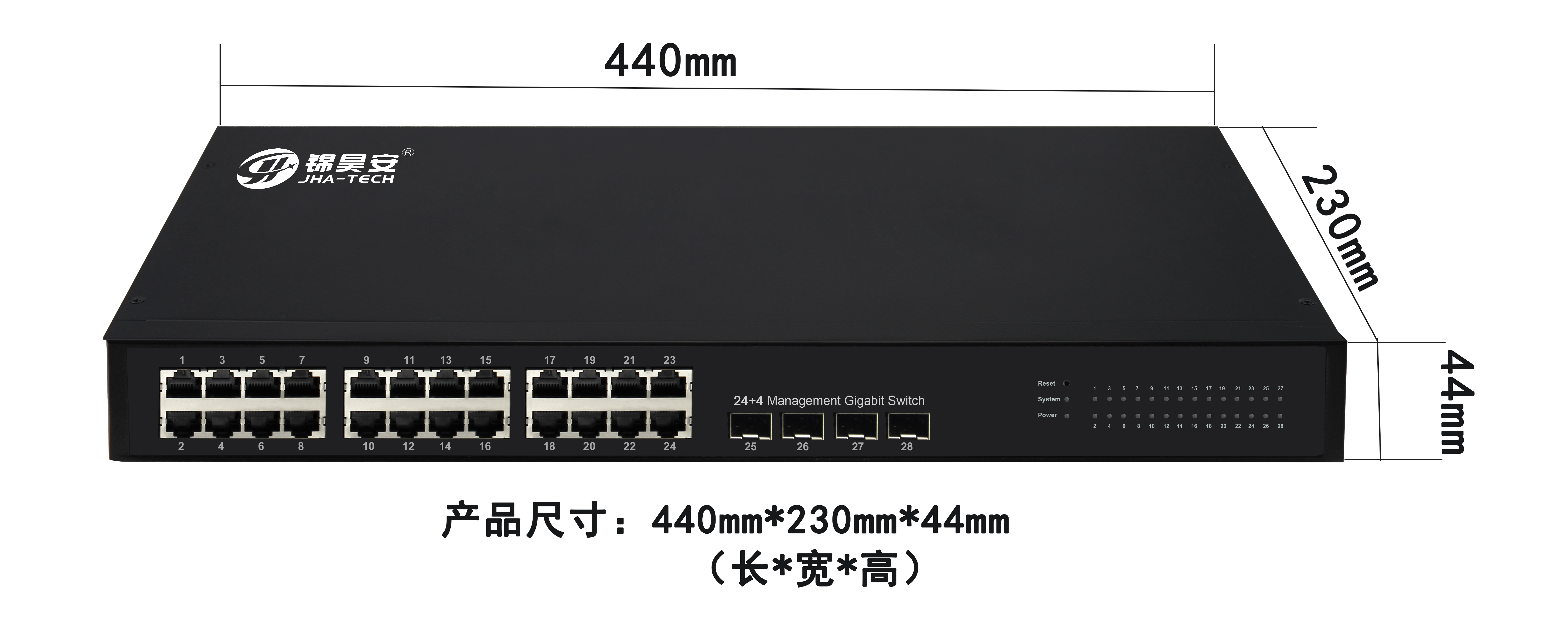 JHA-S4024MGS是一款BCM芯片系列标准的无阻塞交换机。采用模块化设计,提供24个10/100/1000M自适应电口、4个独立1000M光纤口,给汇聚和核心的数据交换提供足够的带宽;提供高容量的交换能力,支持基于三四层的ACL功能。完善的安全控制策略及CPU保护策略(CPU protect policy)提高容错能力,保证网络的稳定运行和链路的负载均衡;设备支持自动DoS攻击防范和SNMP,IEEE 802.1,生成树和快速生成树协议、链路聚合等功能。非常适合中小企业、校园网、网吧和城域网的边缘使用。