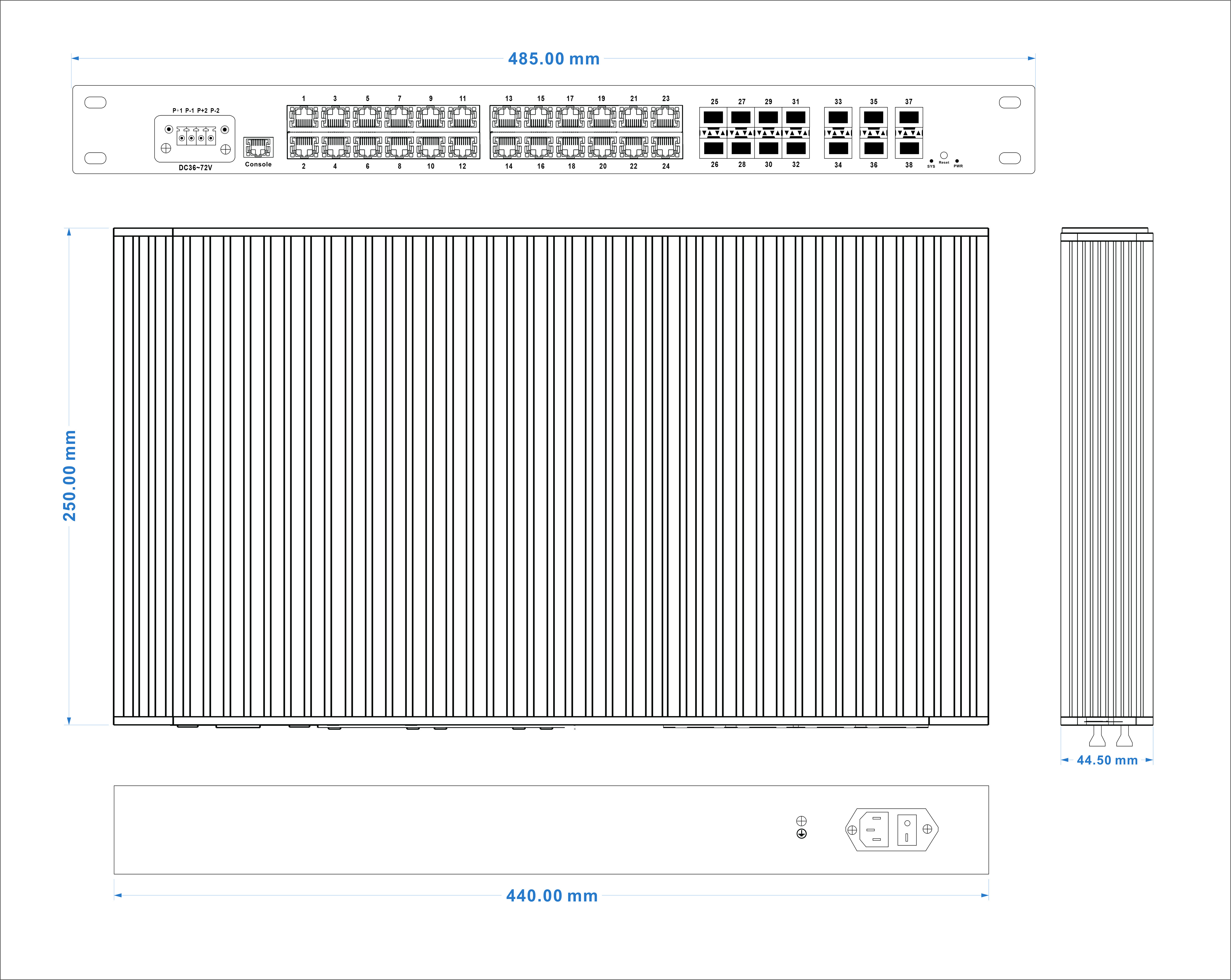 JHA-MIWS6GS8024H系列是我司自主研发的一款管理型工业级强三层万兆光纤以太网交换机,万兆6光千兆8光24电是我司自主研发的一款强三层管理型万兆核心以太网快速交换机,支持 6个100/1000/10000M SFP/SFP光口+自适应光口+24个 10/100/1000Base-T 自适应 RJ45 端口+8个100/1000 SFP光口。万兆6光千兆8光24电完全遵循工业产品设计与用料,外壳采用19英寸机架设计,宽范围工作环境温度、DC37-75V/AC100-240V双电源冗余等技术,提供了耐高/低温、防雷等卓越的工业级品质;支持强大的管理功能,包括系统管理,全面二层管理功能,三层路由管理,QOS队列管理、全面的网络安全管理和监测维护管理;工业级的三级 ESD保护其适合多种场合,例如智能交通、室外监控、工业网络、平安城市和其他恶劣环境中的部署要求,该产品同时采用无风扇、低功耗、工业级设计,-40至85℃工作温度范围,能够满足各种工业现场的要求,提供经济的解决方案。 该设备可广泛应用于智能建筑,智慧城市,智慧社区,智能交通、电信、安防、金融证券、海关、海运、电力、水利及油田等各种宽带数据传输领域。